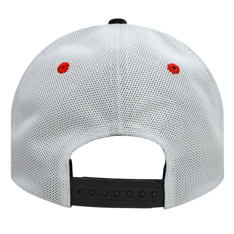 *Off set embroidery *Stretchy twill material *Inside stretch banding *Breathable mesh back *Snap closure